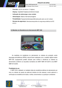 Ao lado, apresenta-se um documento exemplificativo que ilustra a estrutura completa de um laudo técnico de medição de continuidade e aterramento de um Sistema de Proteção contra Descargas Atmosféricas (SPDA). O material permite compreender, de forma geral, todas as etapas envolvidas no processo de elaboração do laudo, destacando os elementos essenciais exigidos pelas normas técnicas aplicáveis.