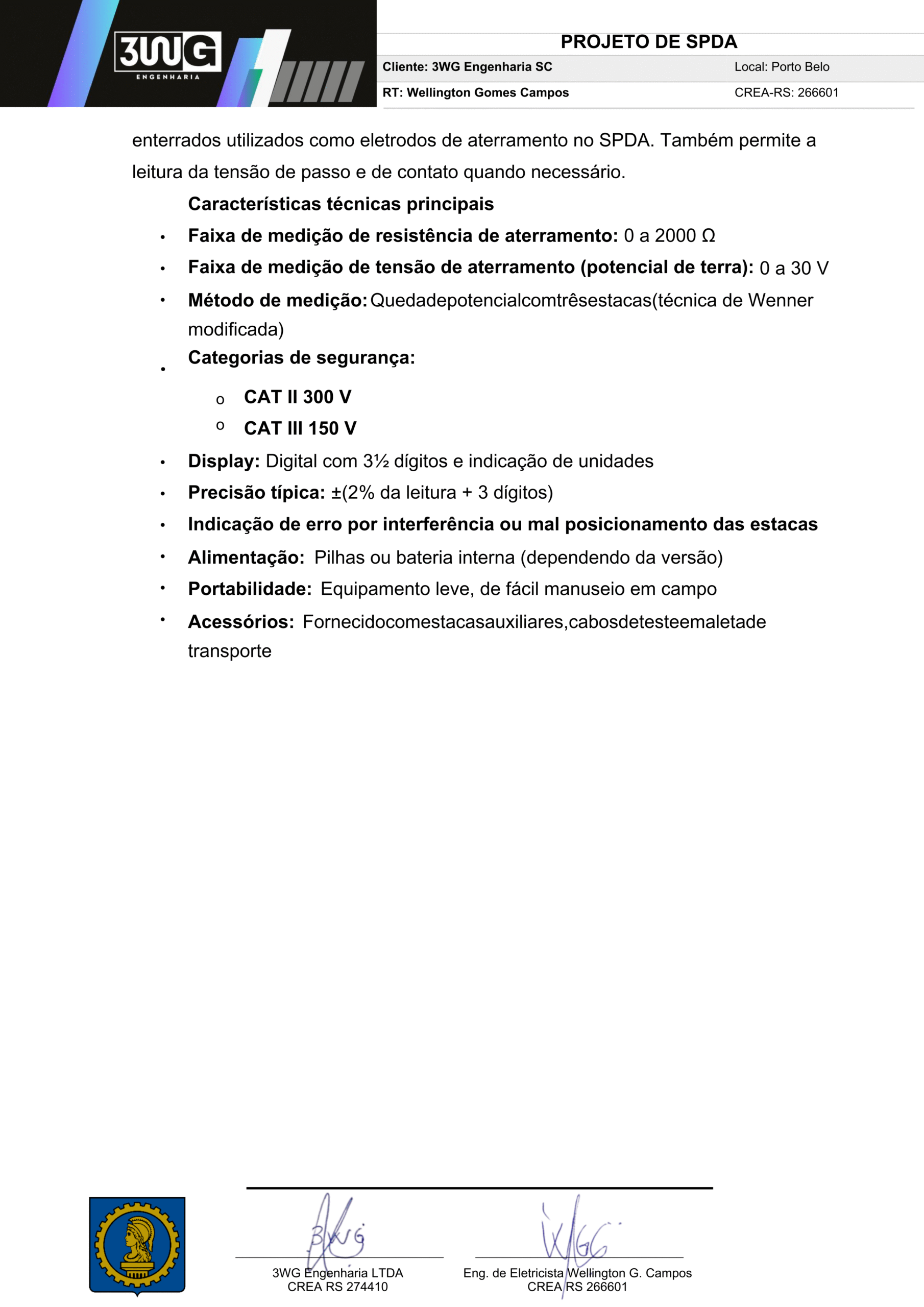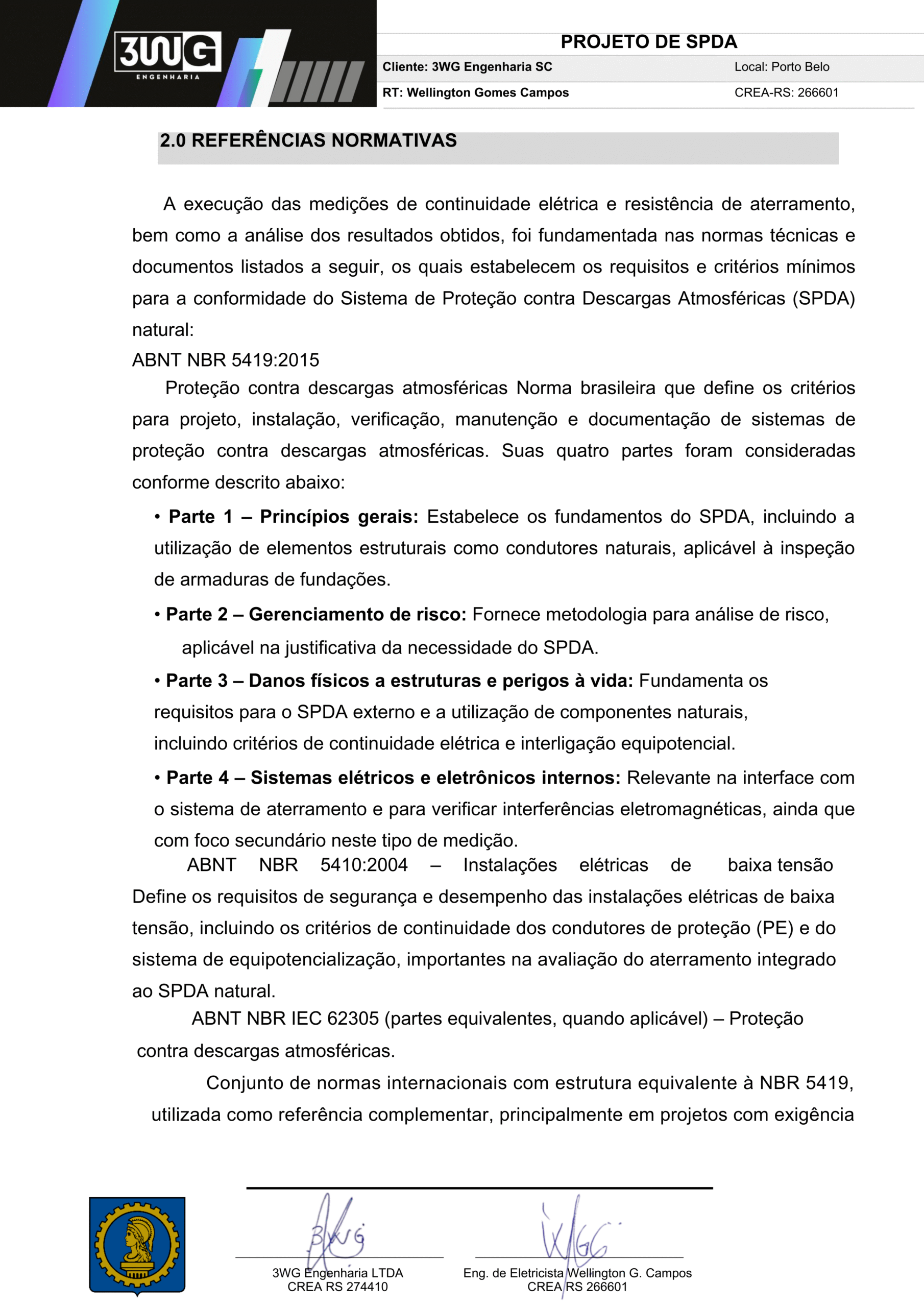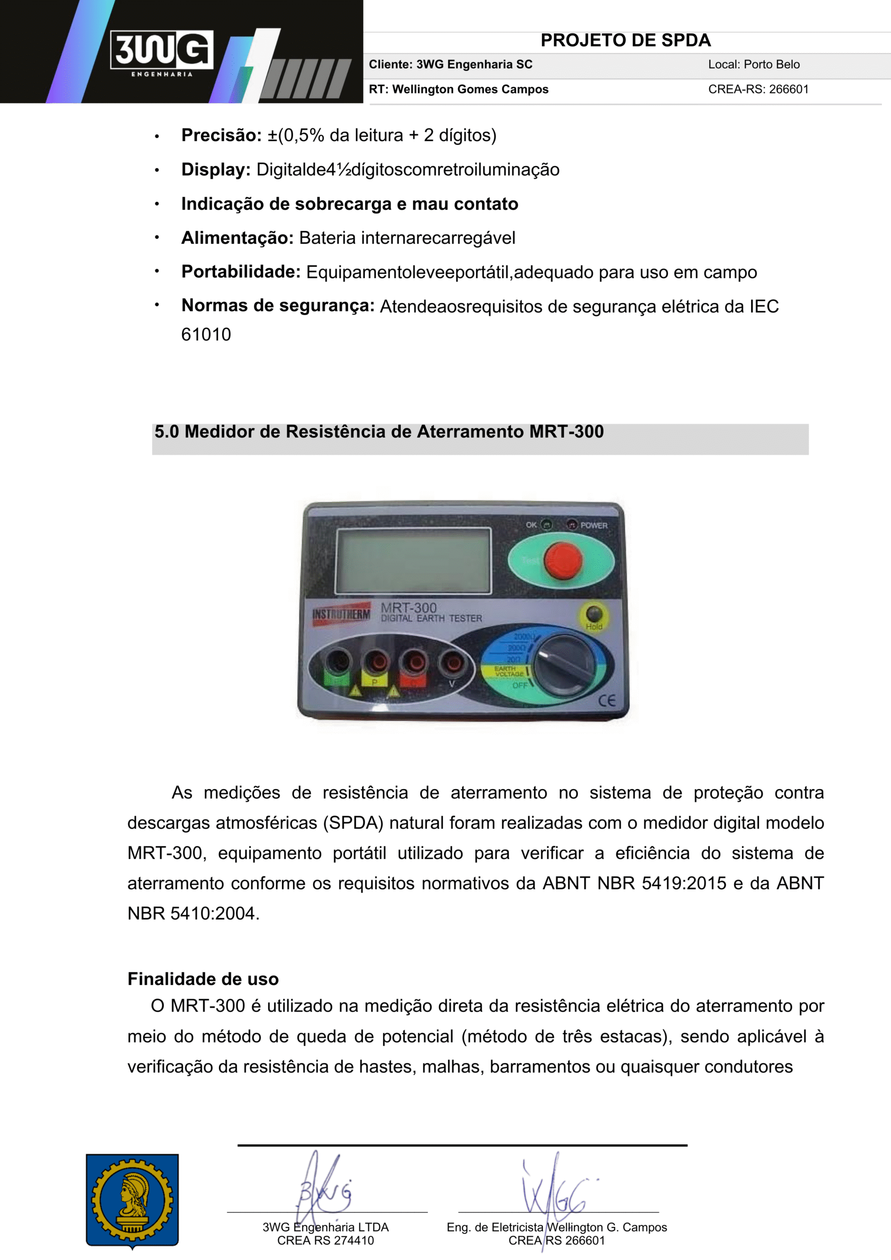 Laudo do Sistema de Proteção Contra Descargas Atmosféricas (SPDA)