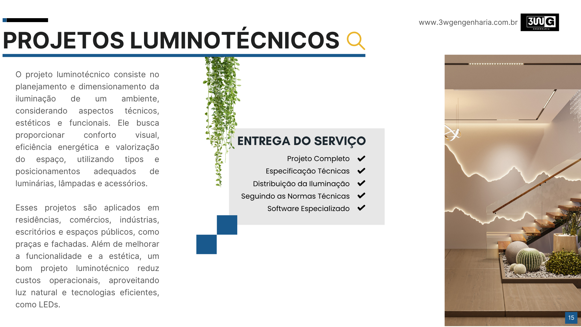 • Definição da quantidade e disposição das luminárias para iluminação eficiente.